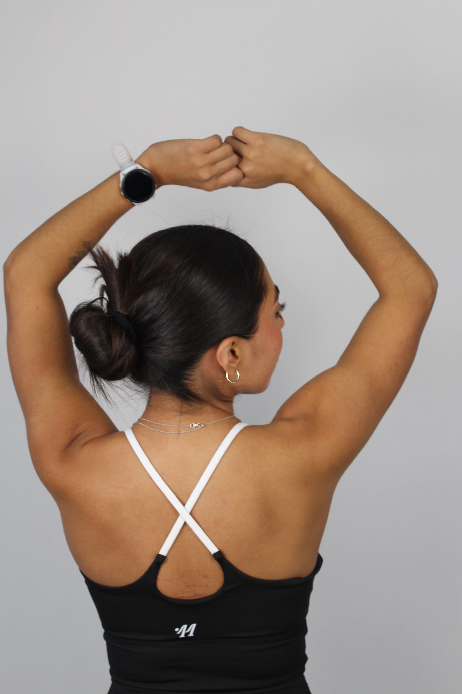 Top deportivo de cuello redondo y silueta ajustada que llega a la cintura. Cuenta con tirantes delgados en contraste que ofrecen un soporte ligero y un diseño limpio. Confeccionado en tela de tacto suave, ideal para entrenamientos de bajo impacto o para un look casual diario.
